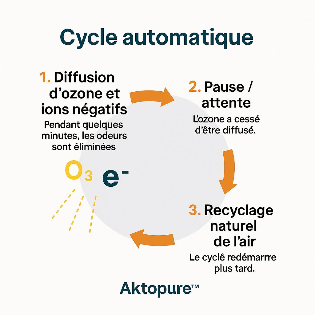 Aktopure™️ est conçu pour un usage domestique quotidien et respecte les normes de diffusion basse. Après le cycle et aération, l’air est totalement sain.
